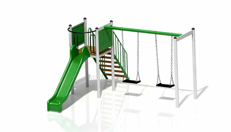 Produsul Complex de Joaca CJ.05.01N este confectionat din structura metalica tratata anticoroziv vopsita in camp electrostatic.
