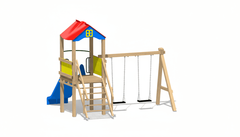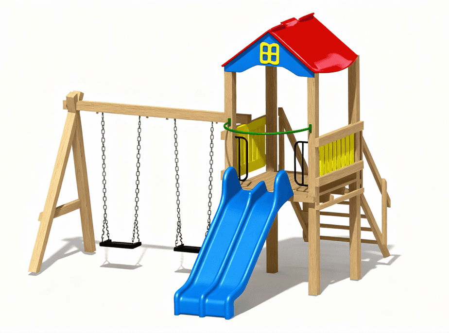 Produsul Complex de Joaca CJ.12N este confectionat din structura de lemn. Acoperit cu bait si lac pe baza de apa, este rezistent la intemperii.
