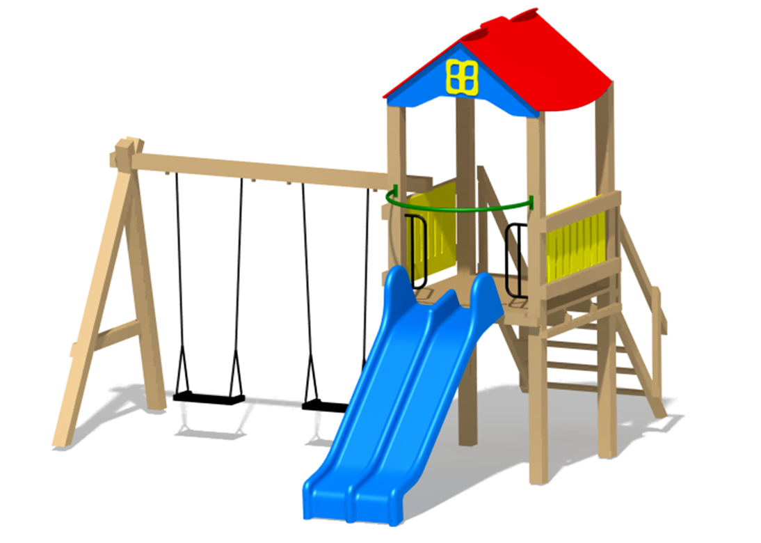 Componente | 1 tobogan dublu din fibra de sticla (PAFS), 1 turn, 1 leagan dublu. |