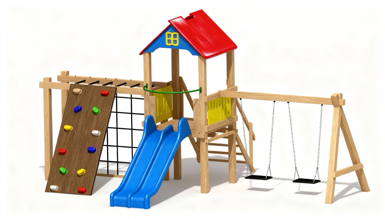 Componente | 1 tobogan dublu din fibra de sticla (PAFS), 1 turn, 1 leagan dublu, 1 perete catarare, 1 sistem catarare. |