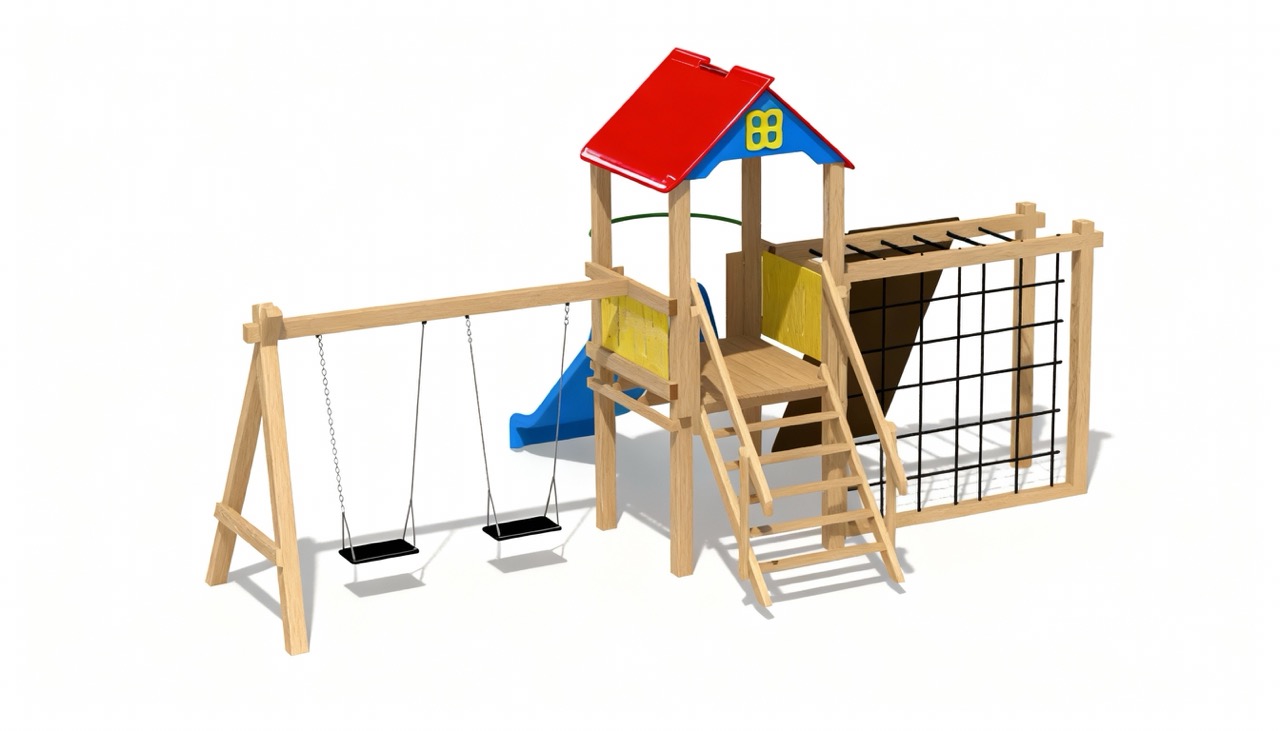 Produsul Complex de Joaca CJ.13 este confectionat din structura de lemn. Acoperit cu bait si lac pe baza de apa, este rezistent la intemperii.