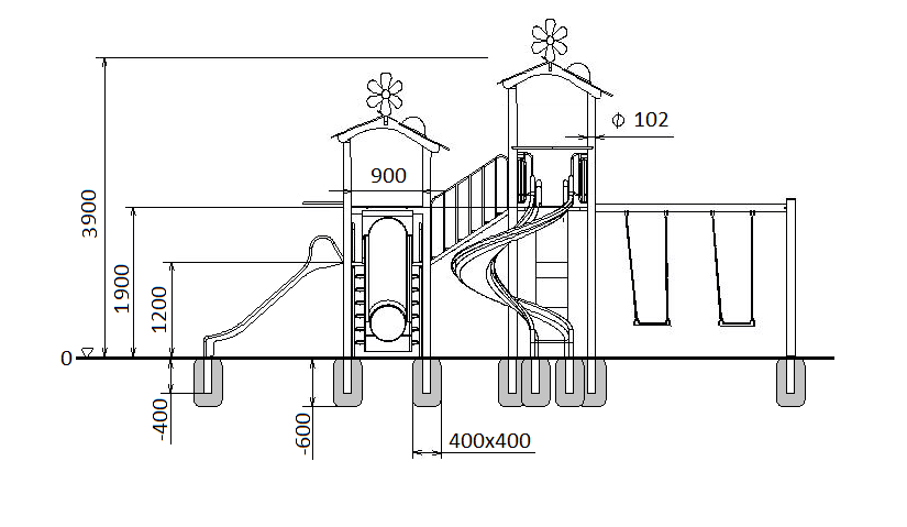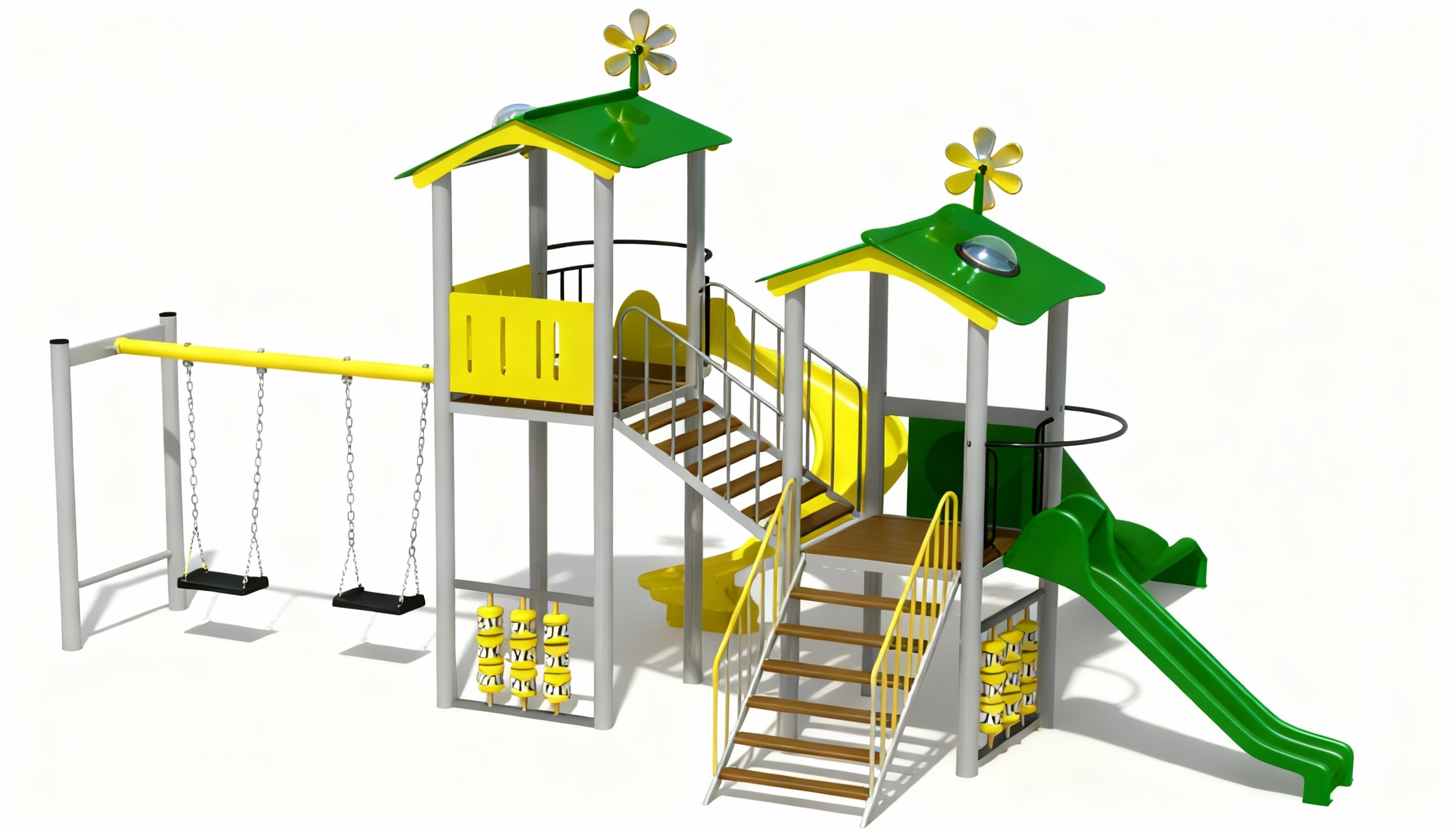 Componente | 4 tobogane din fibra de sticla (PAFS), 2 turnuri, 2 leagane. |